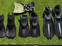 写真左から、通常のレギュラーフィン、NEW ホールフィン、スーパーロングフィン、上は浮くスーパーフィンです。